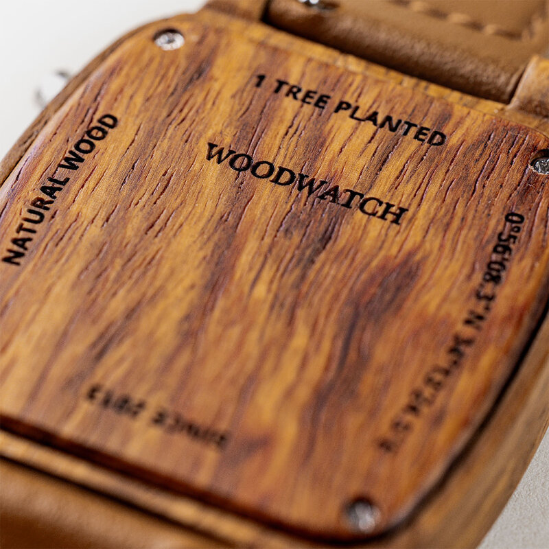 هل لديك قولاً مأثوراً مفضلاً؟ هل ترغب في إضافة لمستك الخاصة على هديتك؟ يمكنك أن تحفر أي اسم أو جملة أو تاريخ على WoodWatch لتجعلها أكثر تميزاً وذات طابع شخصي.
